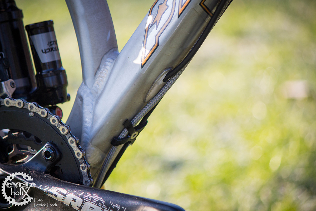 Kritik erntet von uns am Ende eigentlich nur die Konstruktion des Hinterbaus. Das Pro 10 System von Propain arbeitet wie bereits beschrieben sehr gut. Der Hinterbau ist allerdings kompakt gebaut und kann nicht mit jedem Dämpfer bestückt werden. Unser Versuch einen Cane Creek DB Air zu verbauen scheiterte an den Abmessungen des Dämpfers. Zusätzlich erschwert die Konstruktion das Reinigen des Dämpfers und auch die Zugstufenverstellung ist fummelig zu bedienen. Das Ventil zum Befüllen des Monarch+ befindet sich hinter dem Kettenblatt, hier schafft ein Winkeladapter aus dem Zubehör Abhilfe. Wer sich Gedanken um das Thema Verschleiß macht, der sei beruhigt. Von üblichem Verschleiß des Mountainbike Sports abgesehen, überzeugten uns die von Propain verwendeten Lager für den Hinterbau bis zum Schluss. An diesen neuralgischen Stellen des Rahmens konnten wir auch nach Beendigung des Dauertests kein Spiel feststellen.