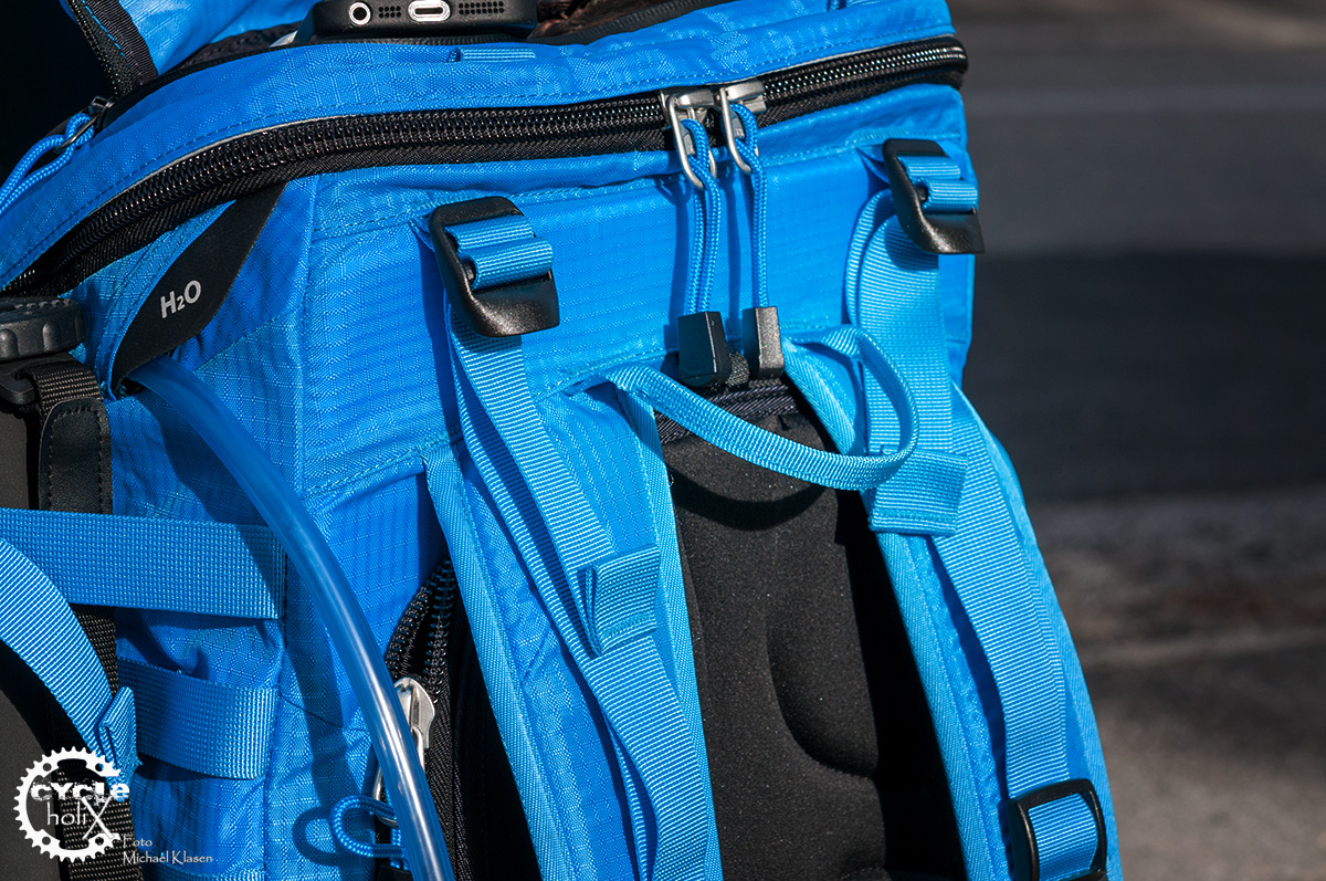 Im Zubehör kann ein Thermobeutel für die Trinkblase bestellt werden, welcher gleichzeitig als Dichtung für das Hauptfach dienen kann. Ebenfalls im Zubehör erhältlich ist eine Regenhülle, welche bei dem Preis eigentlich inbegriffen sein sollte. Ein entsprechendes Fach im Boden ist hingegen vorhanden.