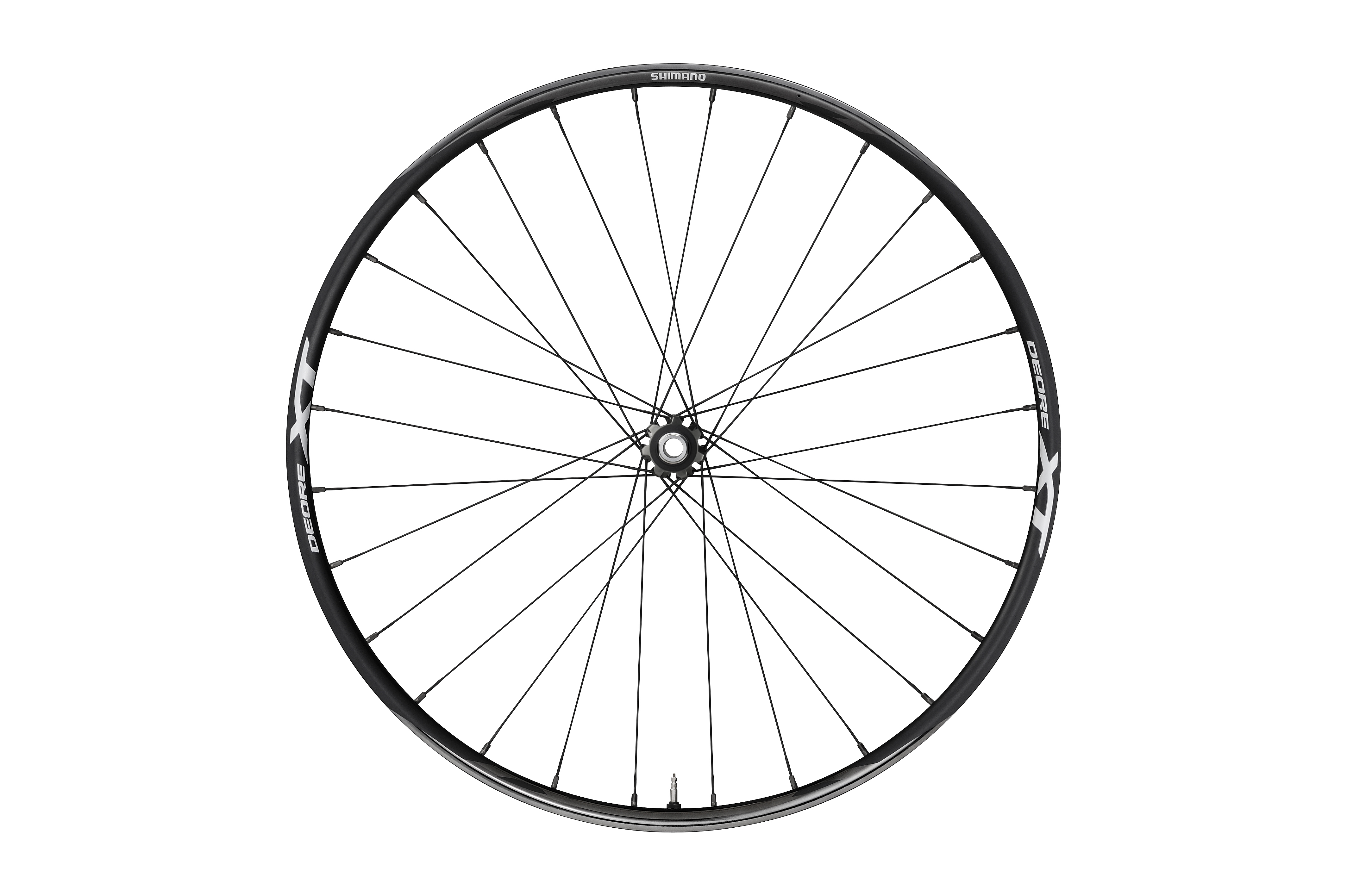 Bei der Entwicklung der neuesten XT Laufräder lag ein wesentlicher Fokus auf der Gewichtsreduzierung bei gleichzeitig sehr hoher Robustheit und Haltbarkeit. Die neuen handgefertigten DEORE XT Race- (WH-M8000-TL-275/29) und Trail-Laufräder (WH-M8020-TL-275/29) besitzen 20 bzw. 24 mm breite Aluminium-Felgen. Jede Felge wurde mit einer breiteren Plattform für die Aufnahme moderner breiter MTB-Reifen versehen und spart im Vergleich zu den Vorgängern rund 40 g Gewicht. Sämtliche Laufräder sind vorne wie hinten mit 28 doppelt endverstärkten Speichen ausgestattet.