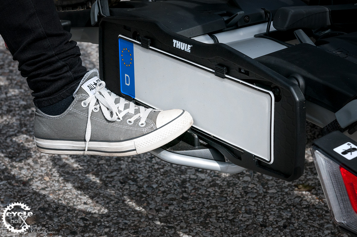 Die erste Beladung der Bikes war spannend. Aufgrund der kompakten Bauweise ist auch der Haltebügel deutlich kompakter, als z.B. beim Thule EuroWay.