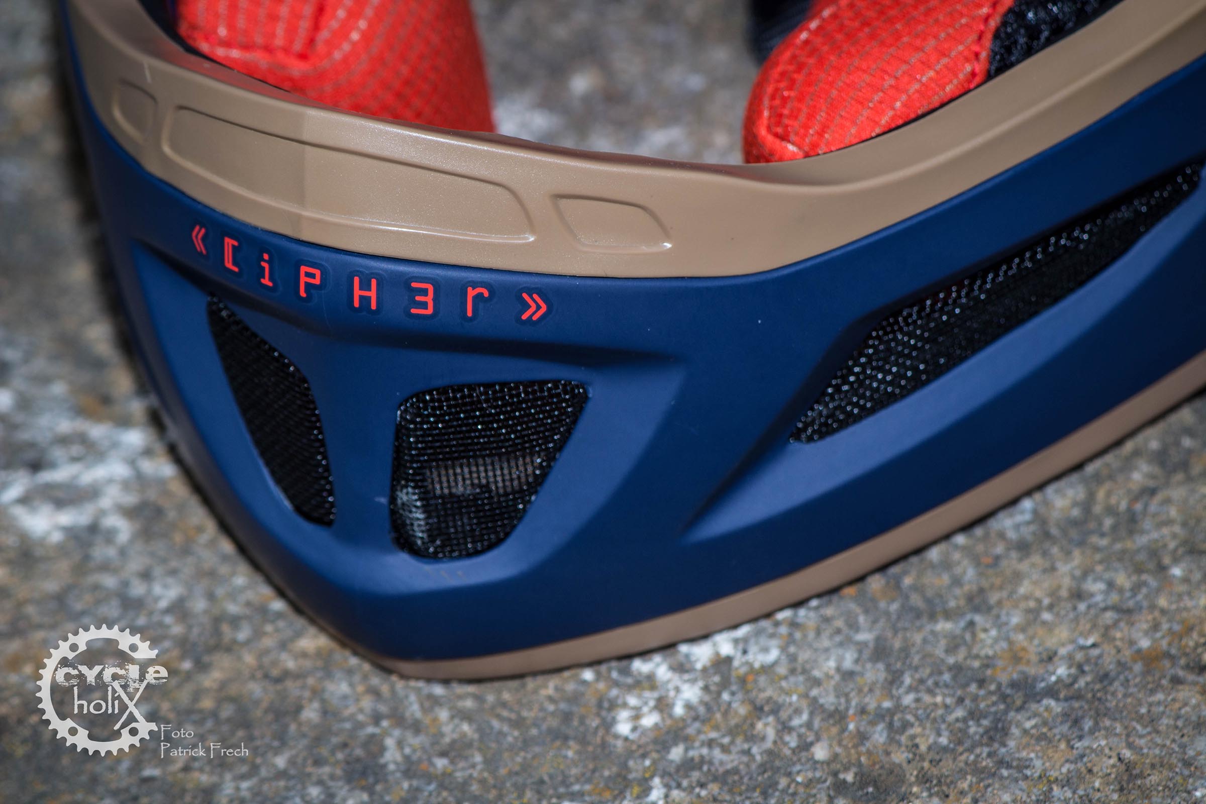 Wie von Giro gewohnt kommt auch der Cipher optisch sehr stimmig daher und wartet mit einer guten Verarbeitung auf. Wir sprechen hier bewusst „nur“ von gut, da der Cipher stellenweise mit leichten Mängeln in der Verarbeitung auffällt. Das sind wie bei anderen Hersteller keine Makel, die keinen Einfluss auf die Funktion haben, aber bei einem Helm für knapp 200 Euro völlig unnötig sind. Davon abgesehen weiß der Helm wie angedeutet sehr zu gefallen. Das matte Blau in Kombination mit roten Schriftzügen und den dezenten Sandfarben kommt gut. Über Geschmack lässt sich aber bekannterweise vortrefflich streiten, also gehen wir direkt zu den wesentlichen Dingen über.