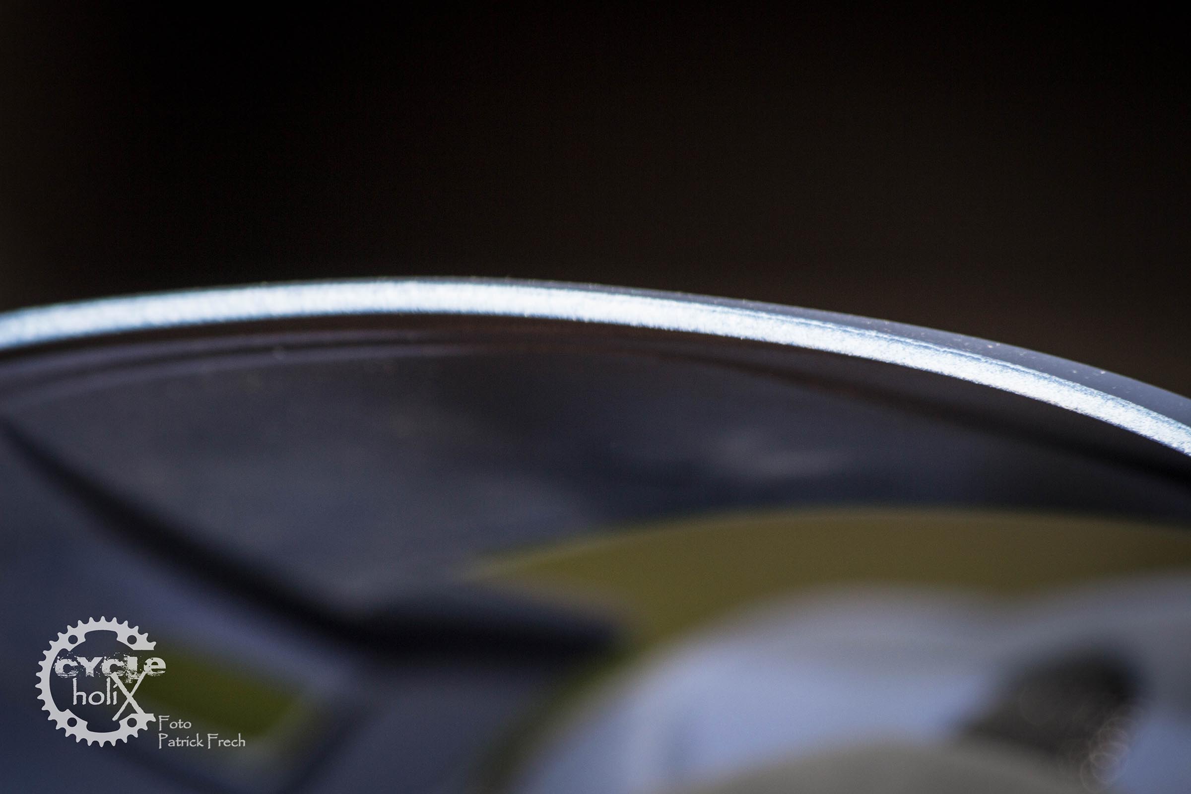 - Vorne am Visier durch fehlende Lackierung