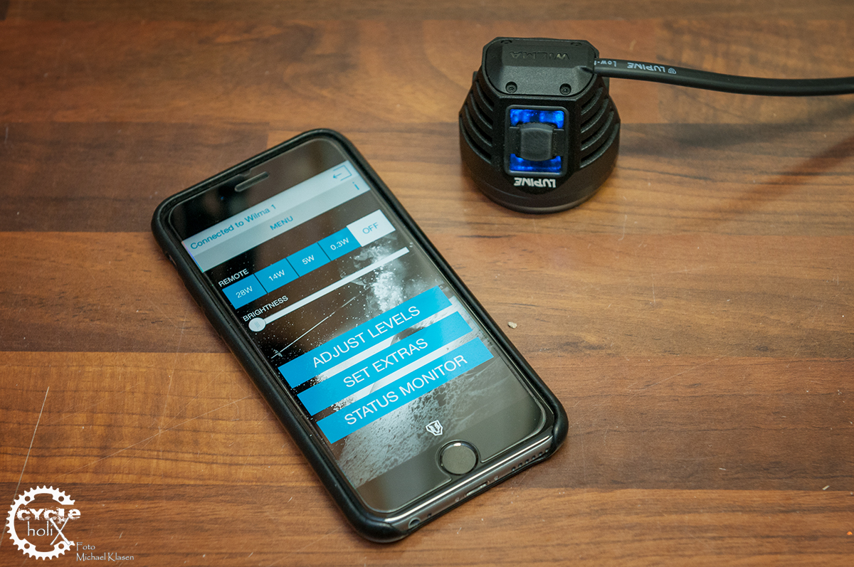 Wie bei allen Lupine Produkten, wird auch die Wilma durch eine intelligente Steuerung vor Überhitzung geschützt. Im Überhitzungsfall wird die Leistung automatisch und in Echtzeit geregelt, so dass zu jeder Zeit die maximal mögliche Lumenzahl zur Verfügung steht. Intelligent geht es auch bei der Programmierung zu. Über verschiedene Tastenkombinationen lässt sich die Anzahl und Leistung der Leuchtstufen, sowie die Akkuleerwarnung programmieren. Die Basics lassen sich komfortabel via Smartphone App einstellen (>>Link Apple App-Store).
